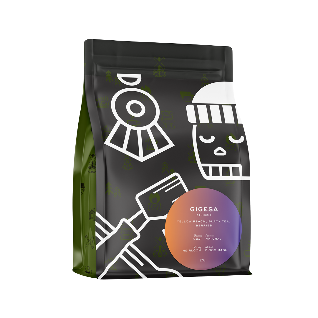 This is a natural processed lot from the renowned Gigesa washing station, operated by the Yonis in Shakiso, Guji.